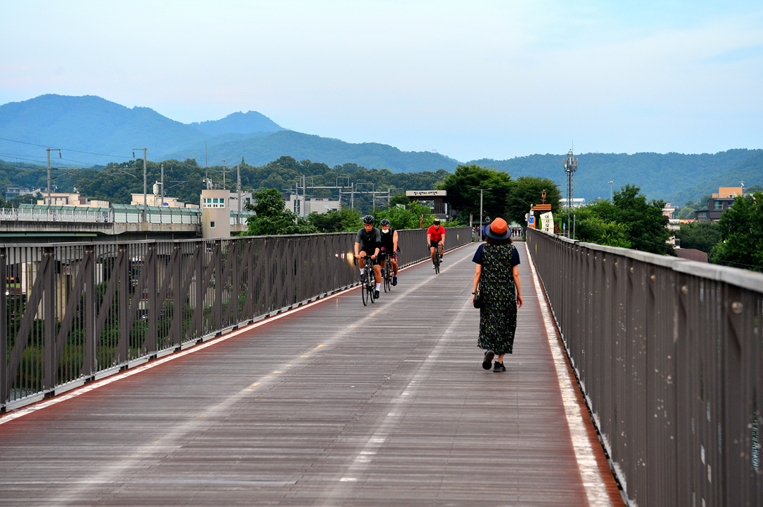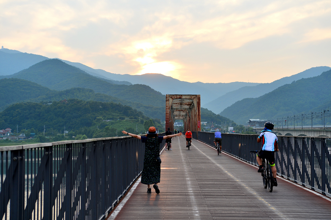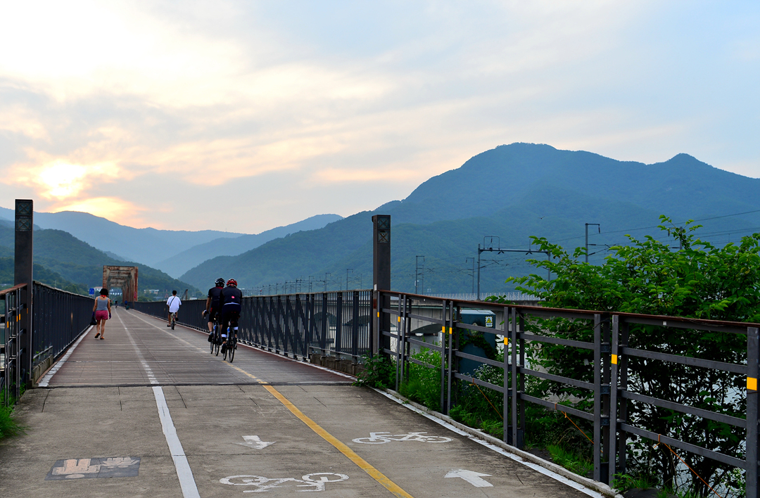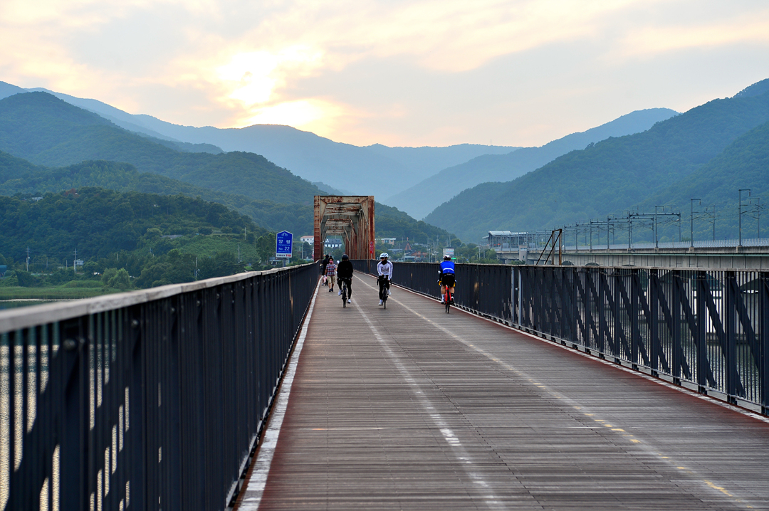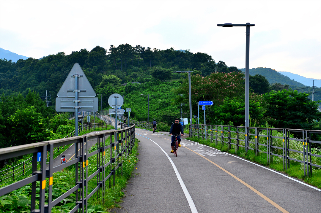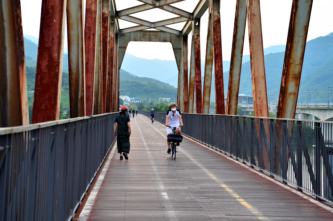 지금은 자전거 전용도로와 산책로로 이용되고 있는~