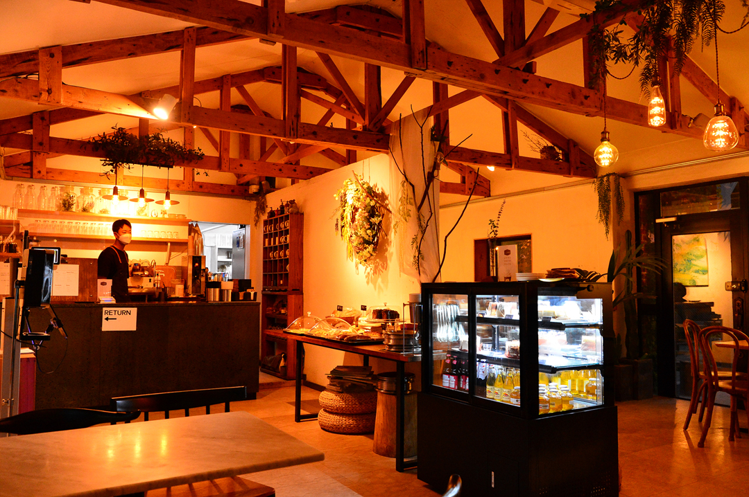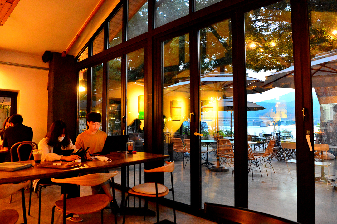 산책을 하고 오는 사이에 카페 건물에 불이 환하게 밝혀졌다.