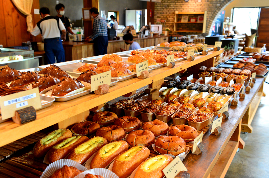 베이커리 카페를 표방하고 있는 곳답게 많은 빵들이 진열되어 있다.