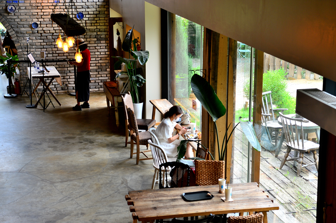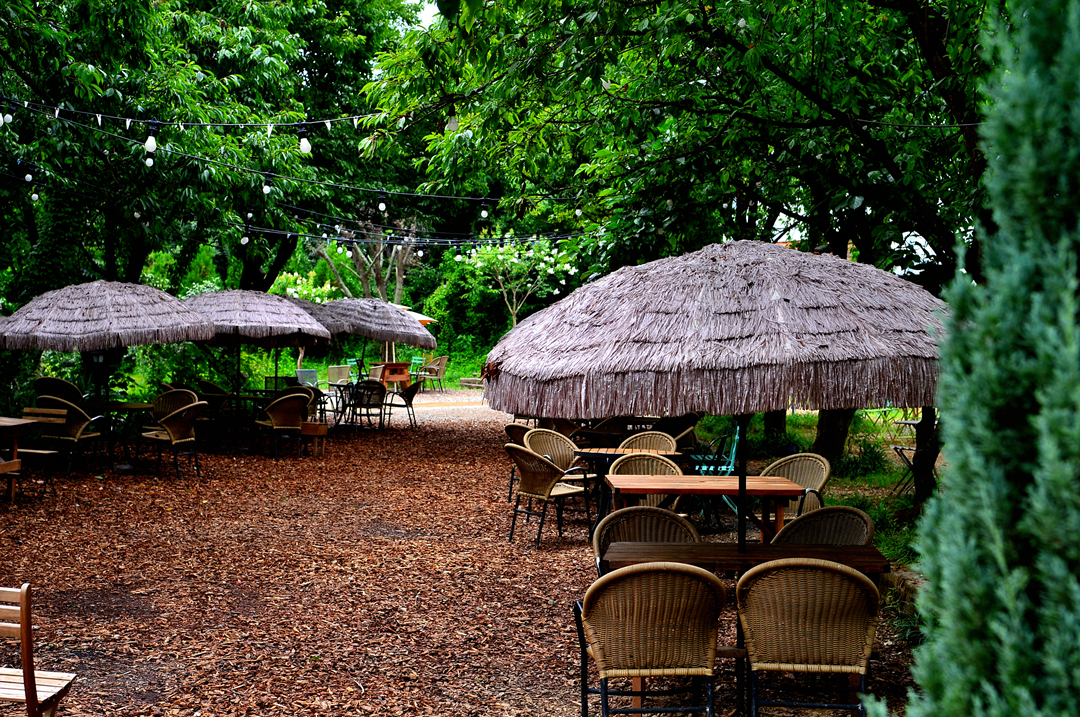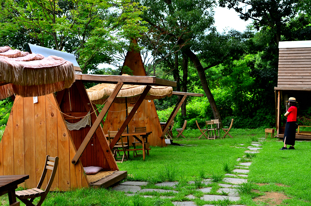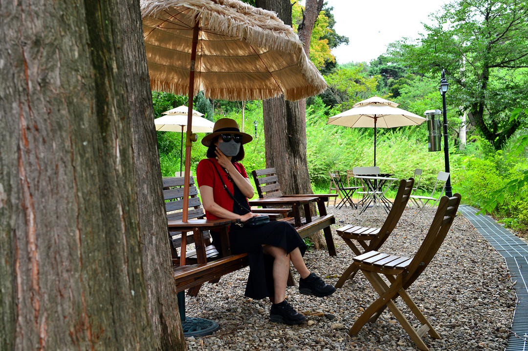 열대 분위기를 느끼며 쉬어갈 수 있는 자리도 마련되어 있다.