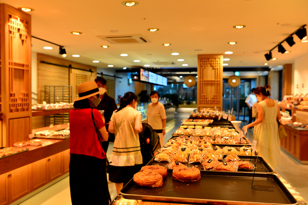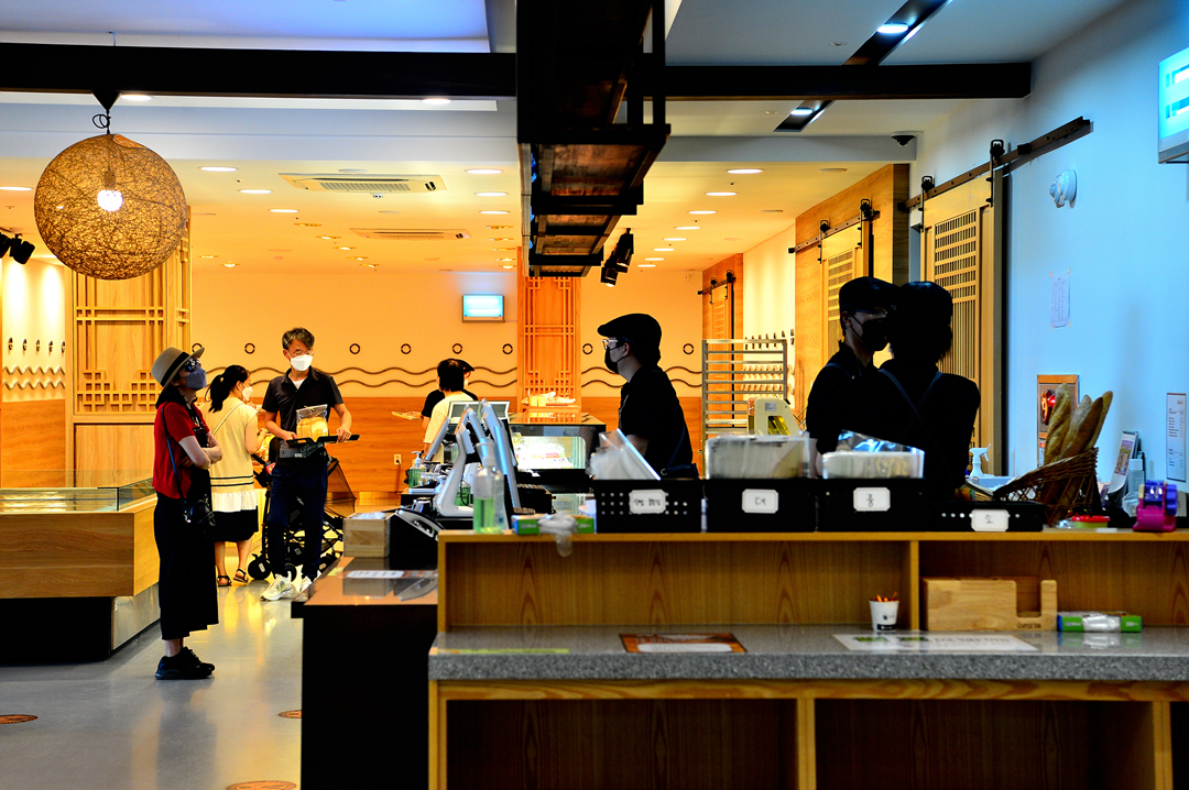 1층에 마련된 각종 빵 진열대와 주문받는 곳 모습이다.