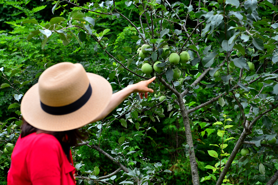 풋사과가 주렁주렁 달려 있다.