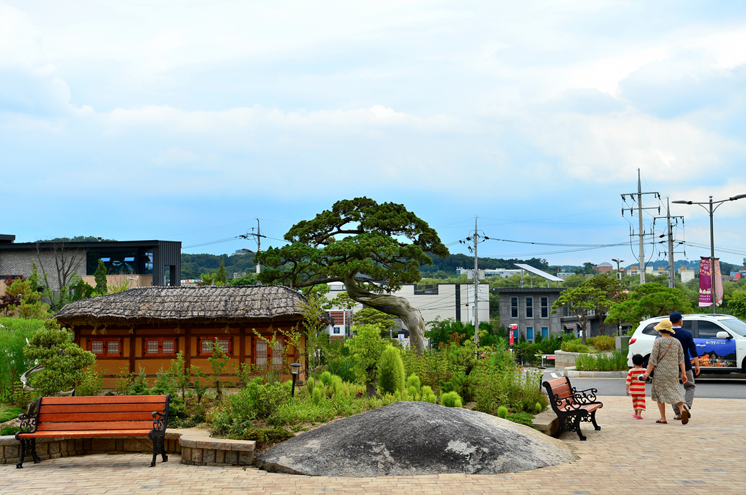 옛 정취를 자아내는 자그마한 초가를 건물 앞에 만들어 놓았다.