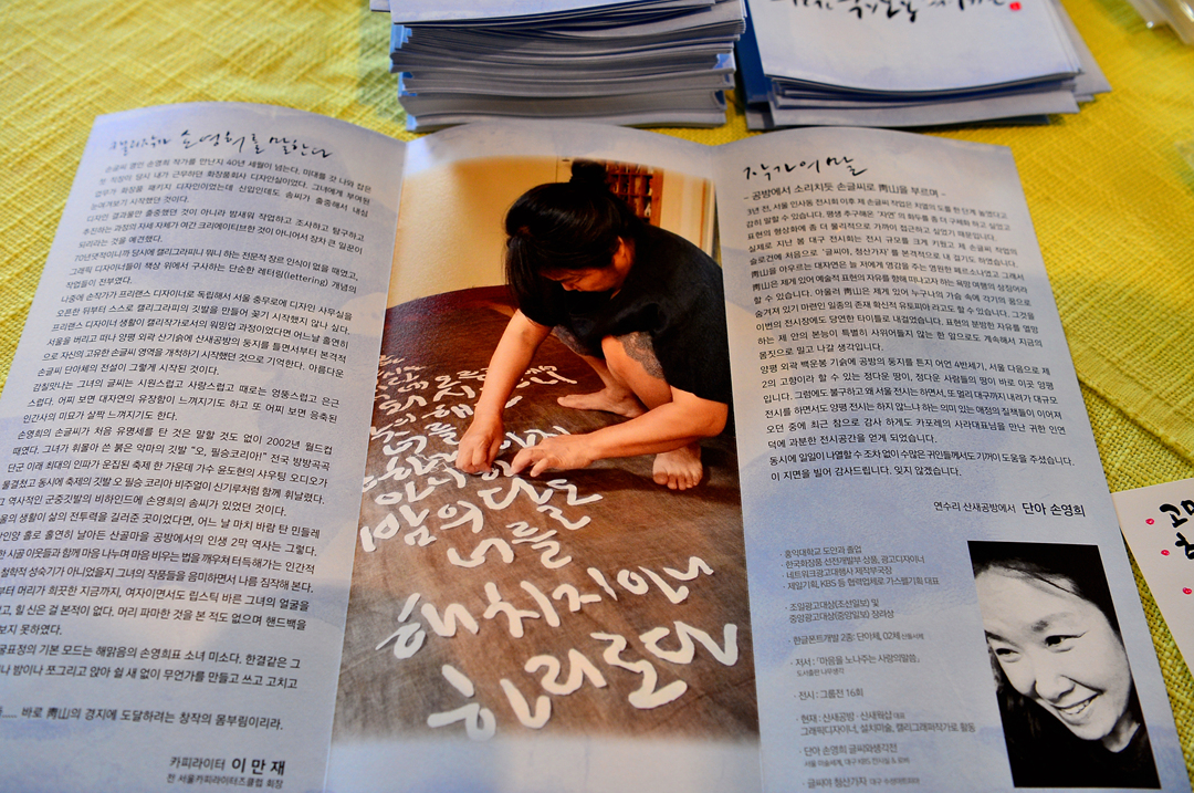 “제가 대학에서 도안을 공부한 후 광고 회사에서 일할 때, 손글씨를 지면 광고에 썼습니다. 글씨를 회화처럼