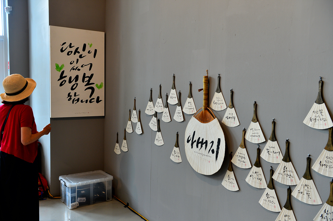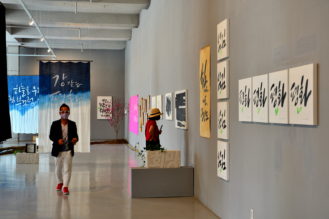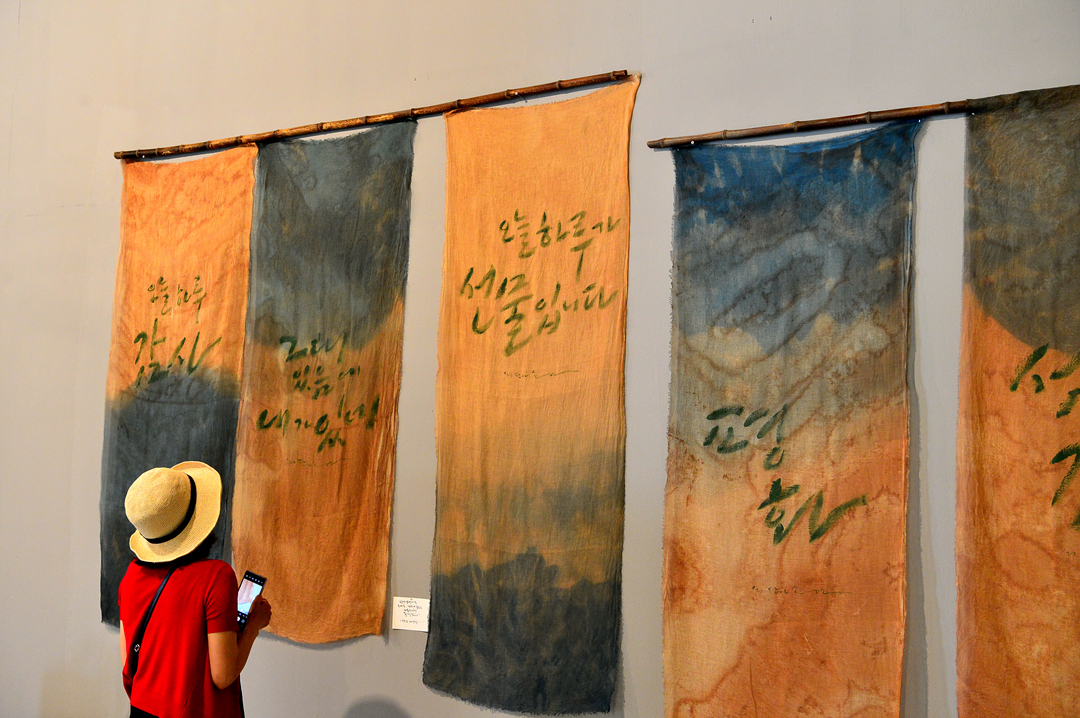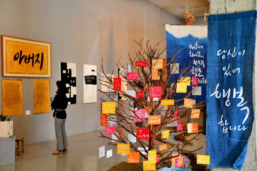 전시회는 1000여㎡(300여 평)의 공간에서 종이와 천, 돌 등 다양한 소재에 쓴 작품 100여 점을 선보인다.