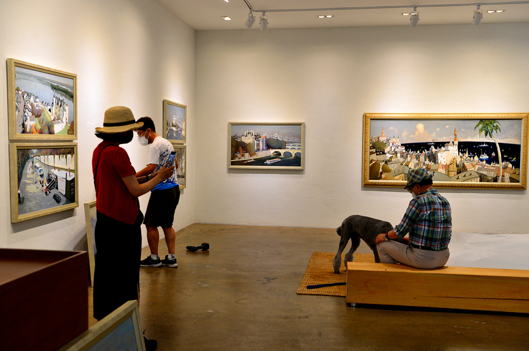 작업이 이루어지고 있었는데, 유럽의 풍경을 그린 그림들을 벽면에 전시하고 있다.