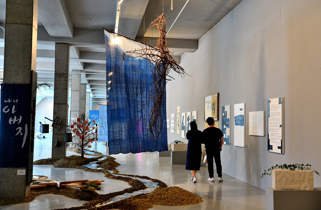 등에서 전시했으나, 거주지인 양평에서는 이번이 처음이다. 전시장에 들어서면 ‘아버지’라는 큰 글씨가 눈길을