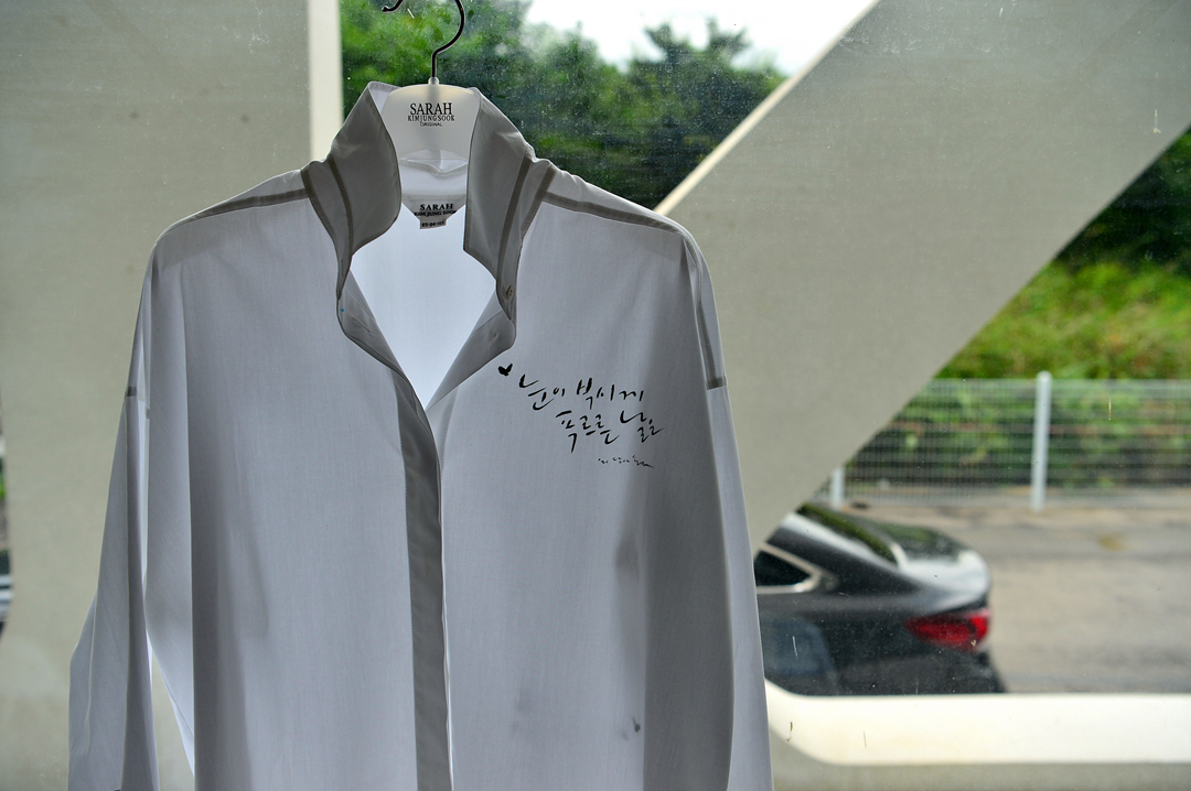 옷에도 잘 어울리는 아름다운 글씨라는 생각이 든다.