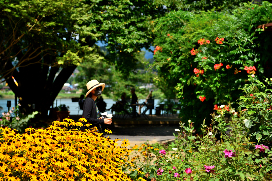 오솔길 끝에는 강을 조망하며 쉴 수 있는 데크가 있고