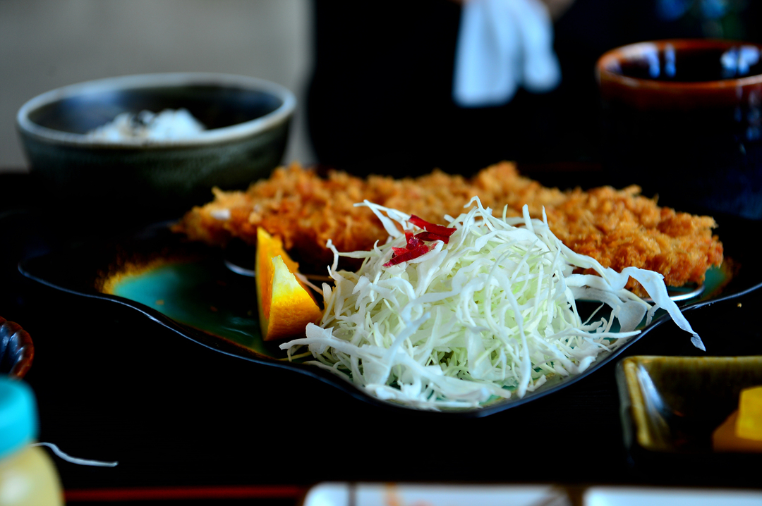 아내 몫의 돈가스인데 얇게 입힌 튀김옷에 잘 익은 고기가 부드럽고 맛있었다.