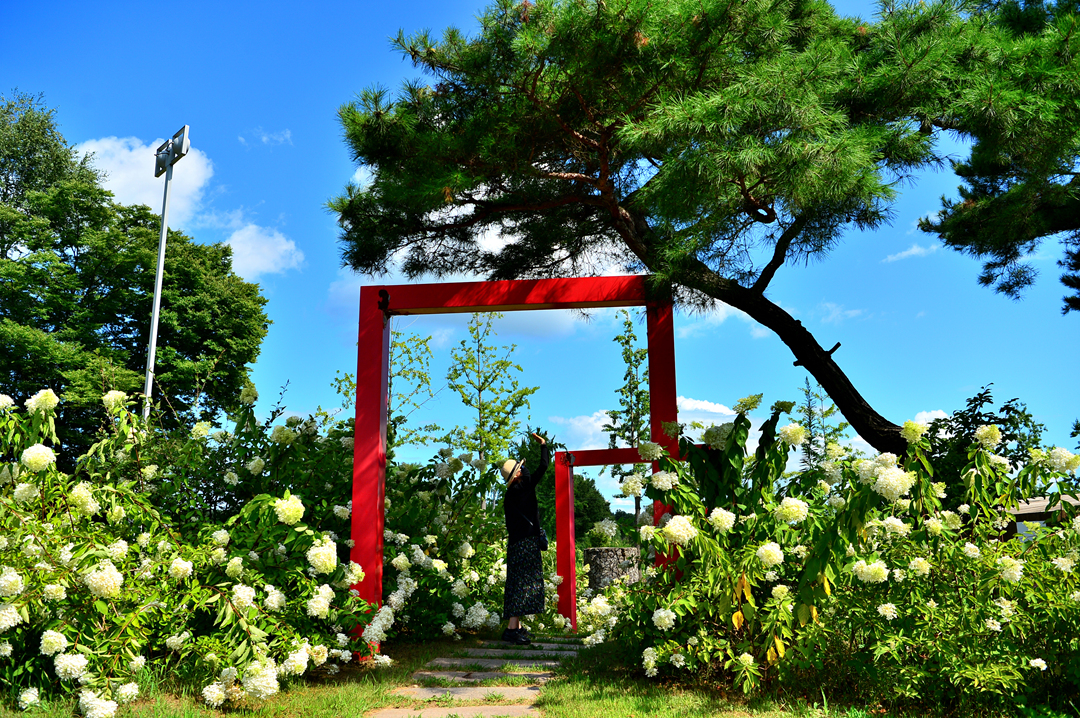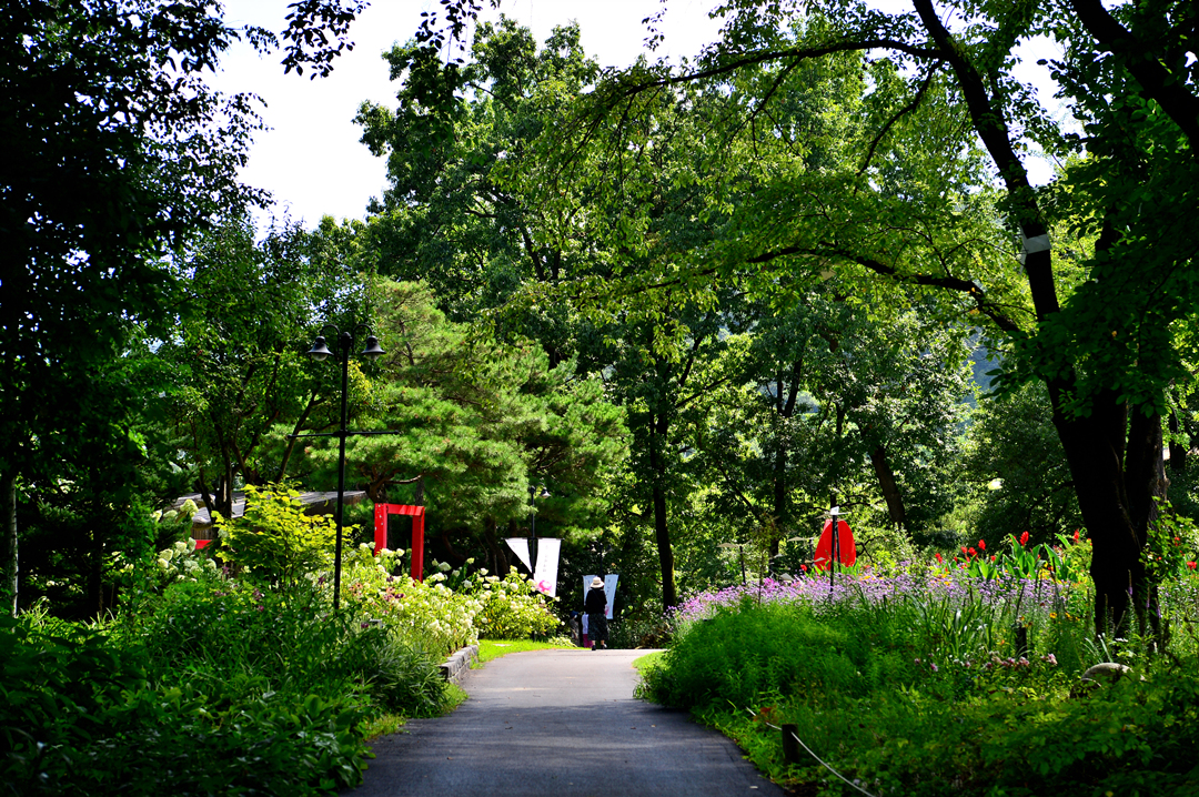빨간 오브제를 따라가면 Art Park 流美齋라는 전시 건물로 이어지는데