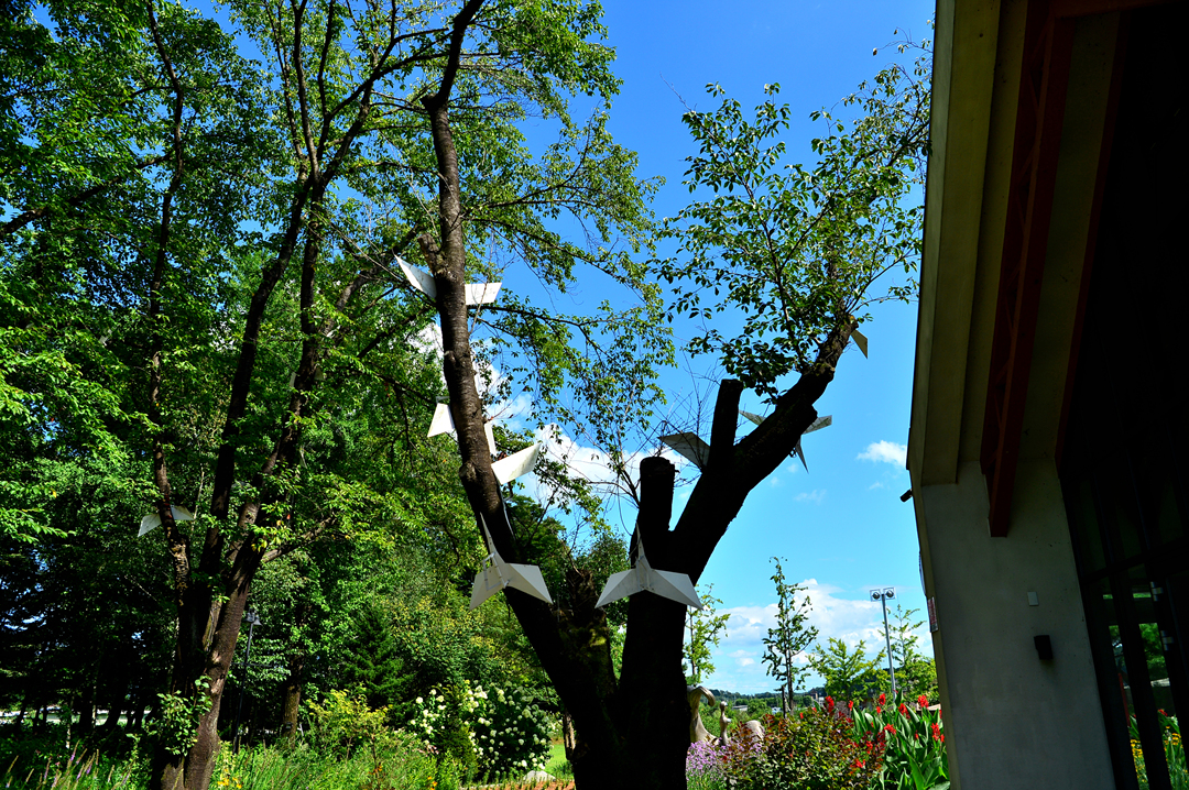 벚나무로 날아오르는 하얀 새들을 자세히 살펴보니 전등이다.