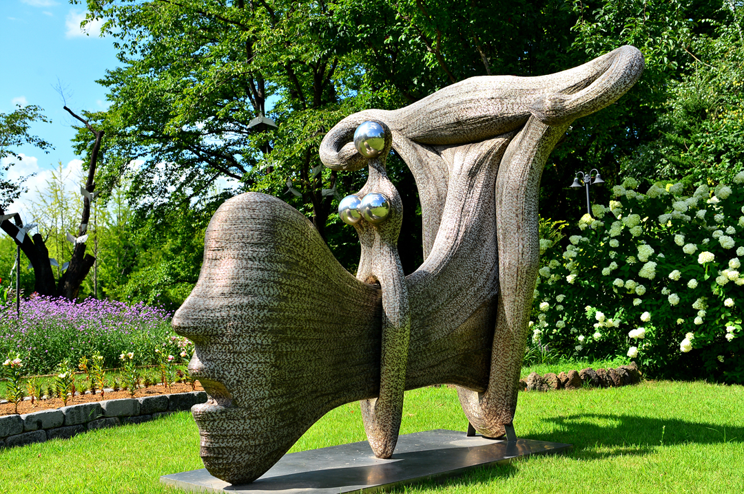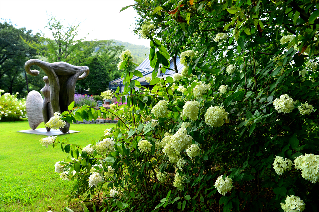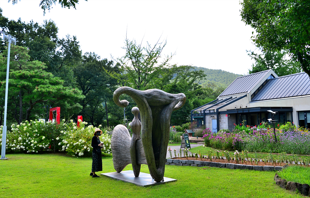 정원에는 조각품도 설치되어 있다.