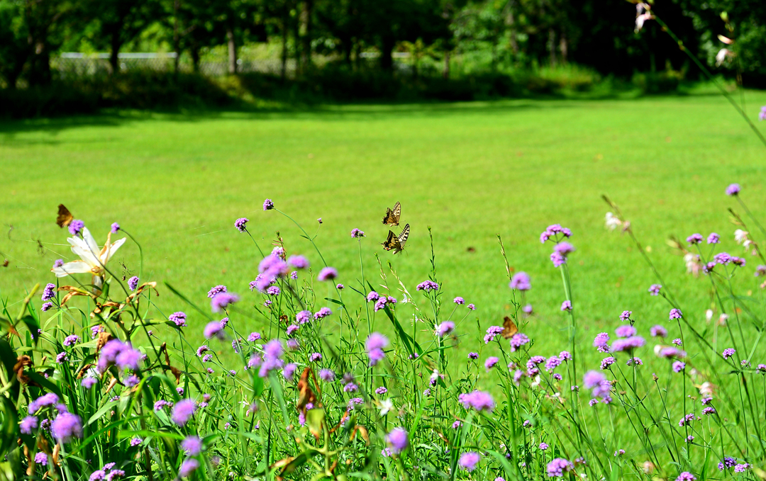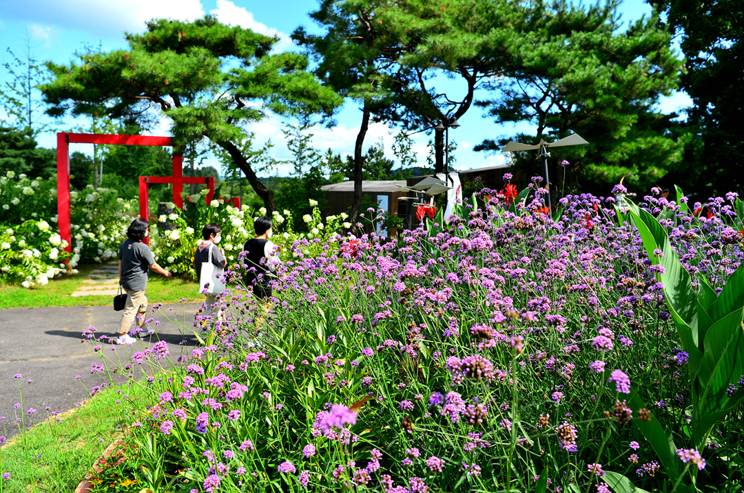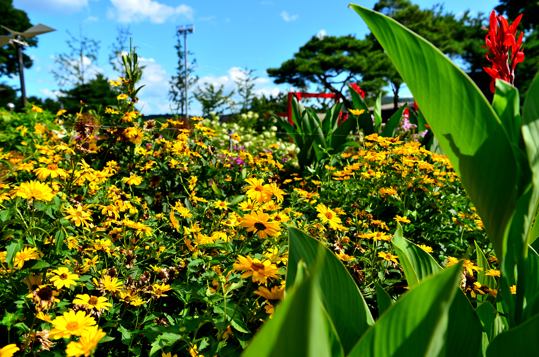 잔디 광장 주변의 아름다운 꽃들이다.