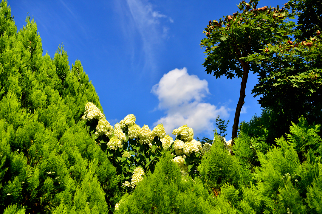 정원에서 숲을 바라보니 비로소 자작나무가 눈에 띈다.