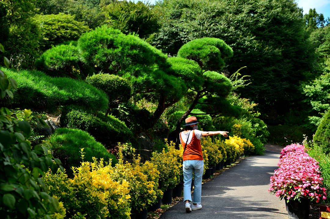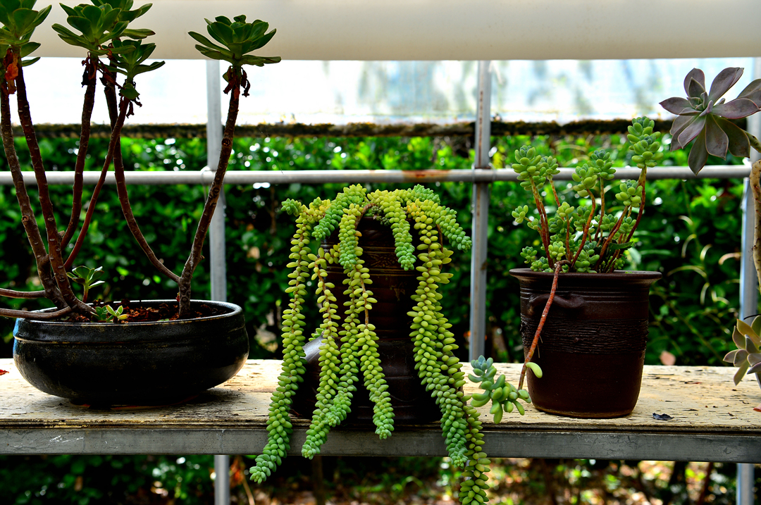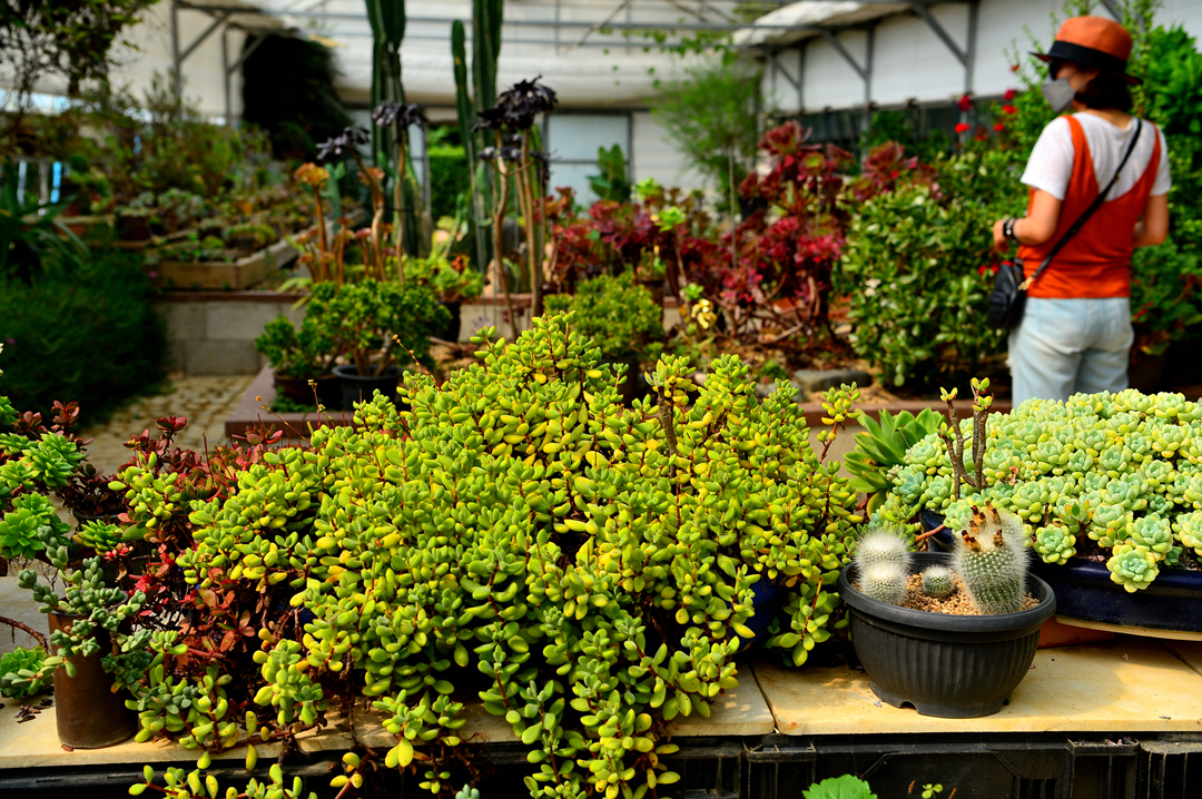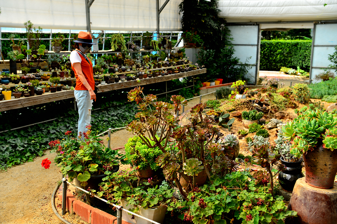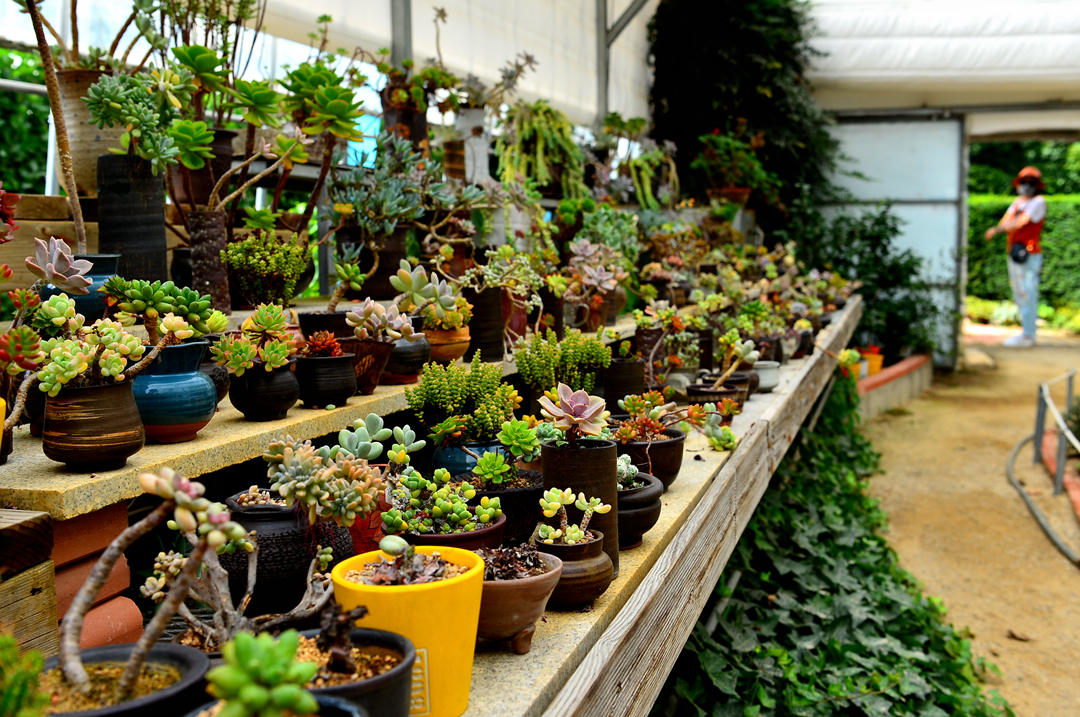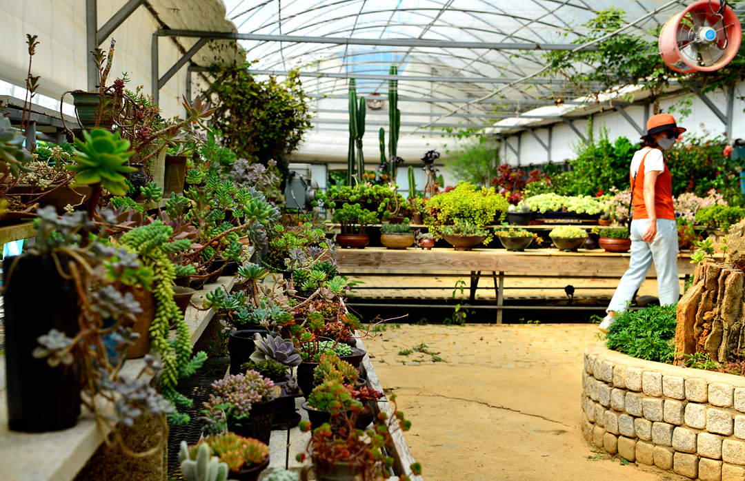 다육 식물을 가꾸고 있는 온실 안으로 들어선 모습이다.