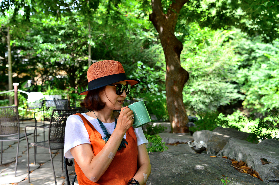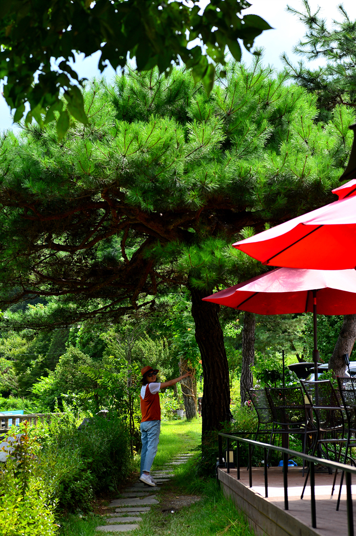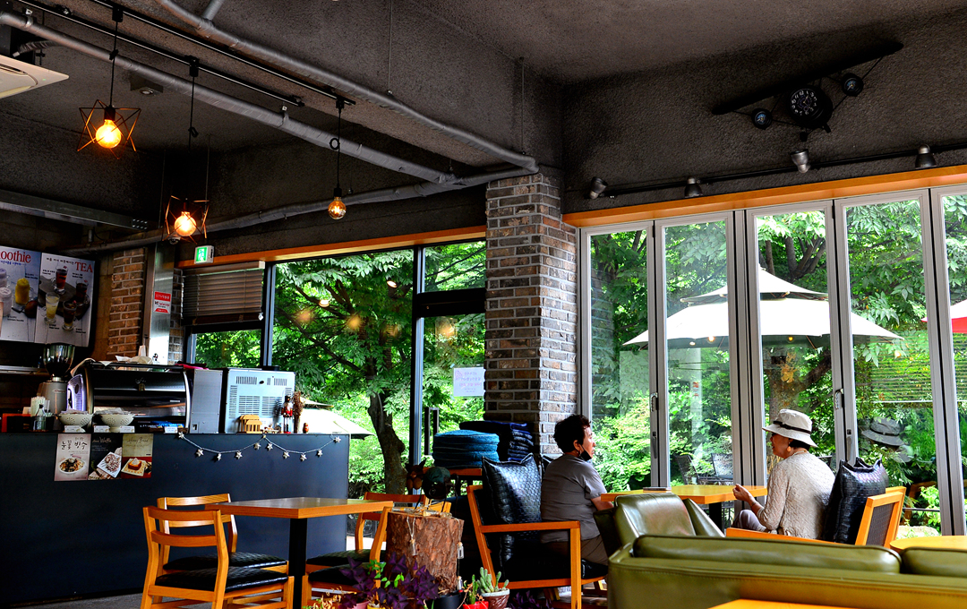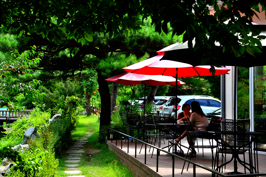 카페 뒤편의 개울은 어린아이들이 물장구칠 수 있을 정도의 작은 개울이다.