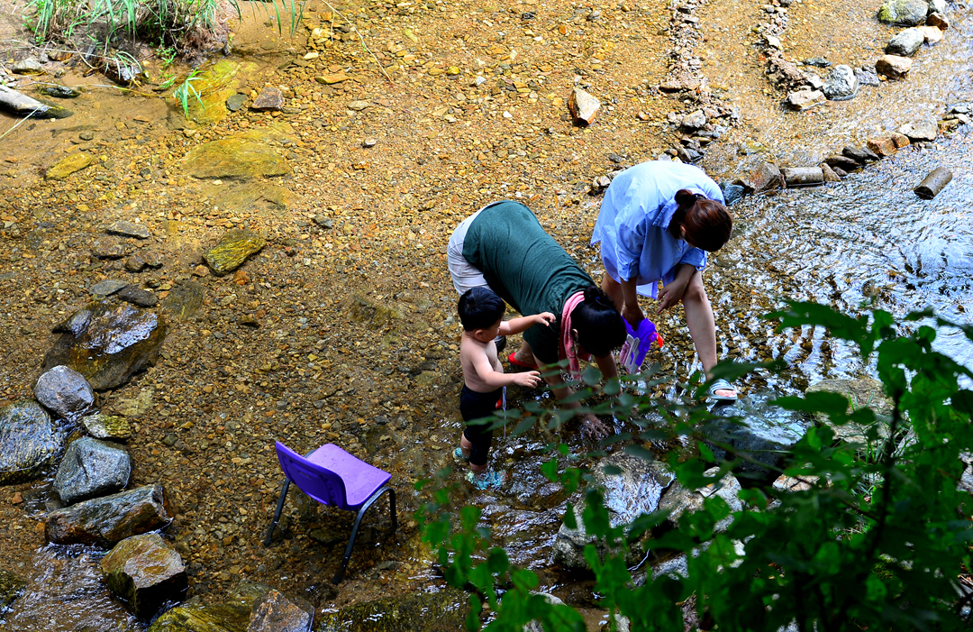개울에서 뭔가를 찾고 있는 단란한 가족 모습이 보기 좋다.