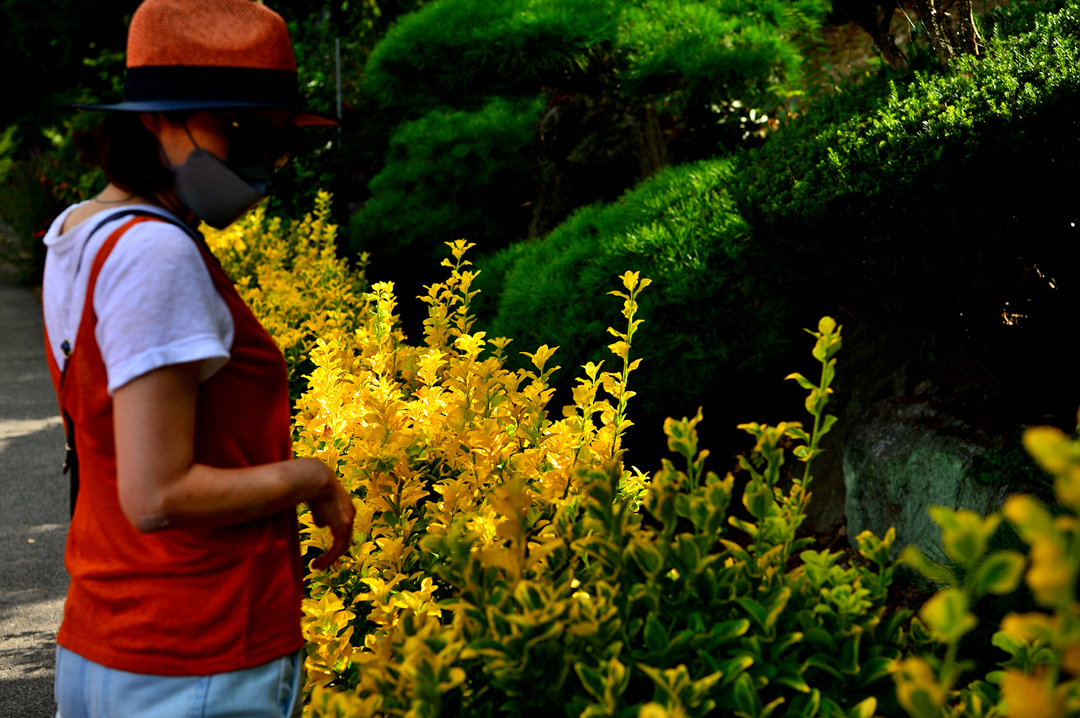 노란 나뭇잎이 꽃 못지않게 아름답다.