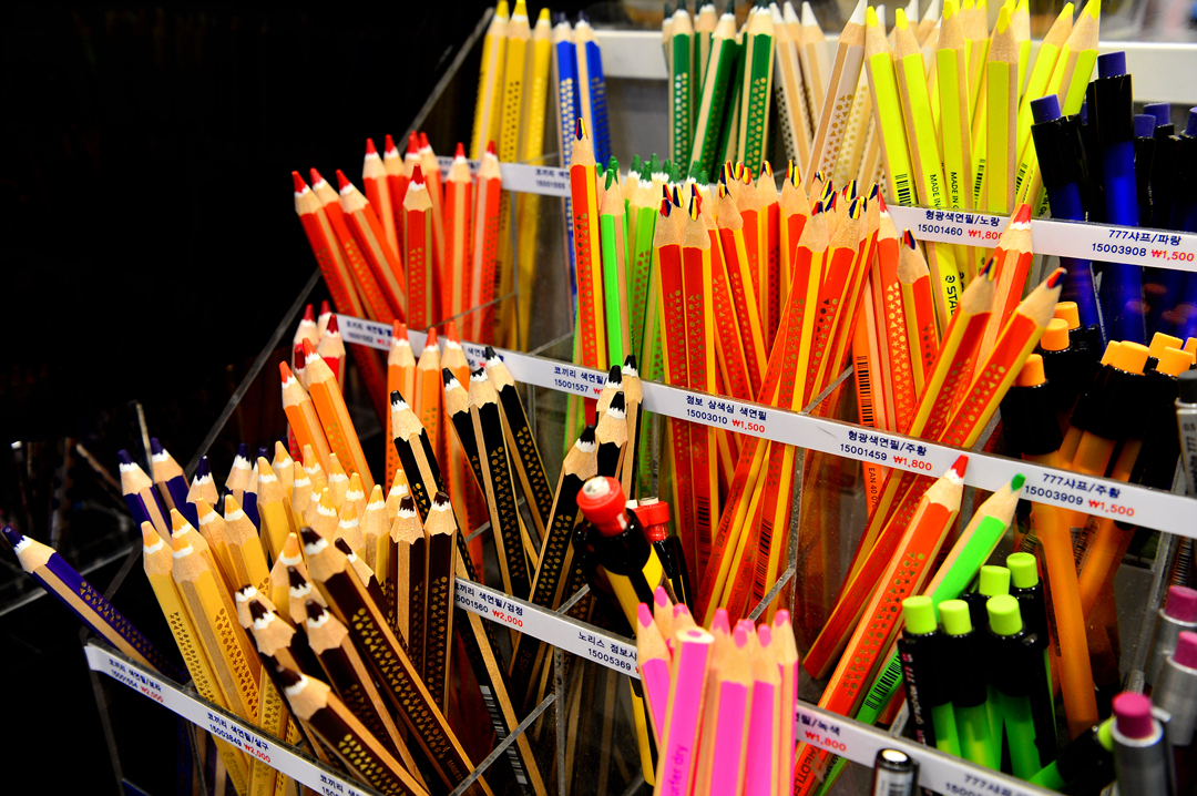 그림 그리기에 그만일 듯한 예쁜 색연필들이 동심을 자극한다.