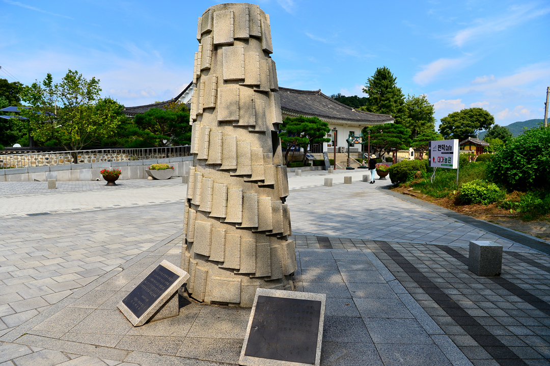 다산길에 세워져 있는 이 석재 조형물은 다산의 수많은 책을 모티브로