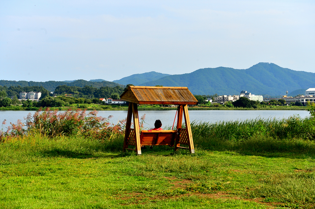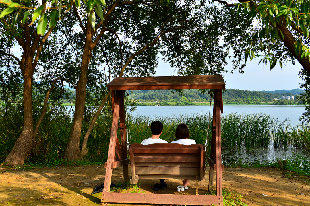남한강의 정취에 흠뻑 빠져있는 젊은 연인의 모습이 아름답다.