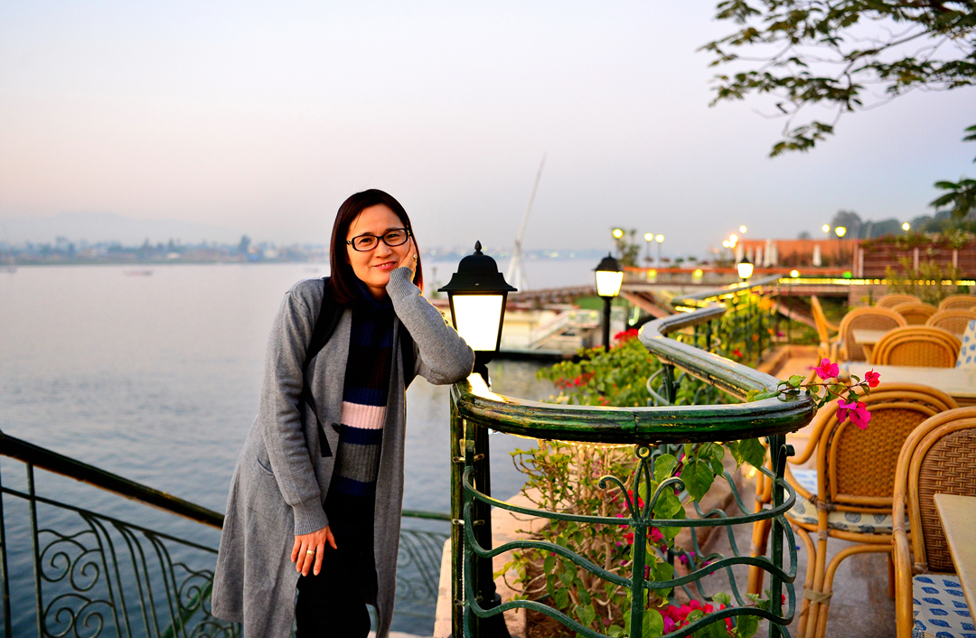 나일강의 물을 만져보겠다고 강가로 내려선 아내 모습이다.