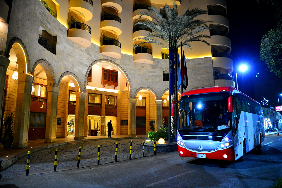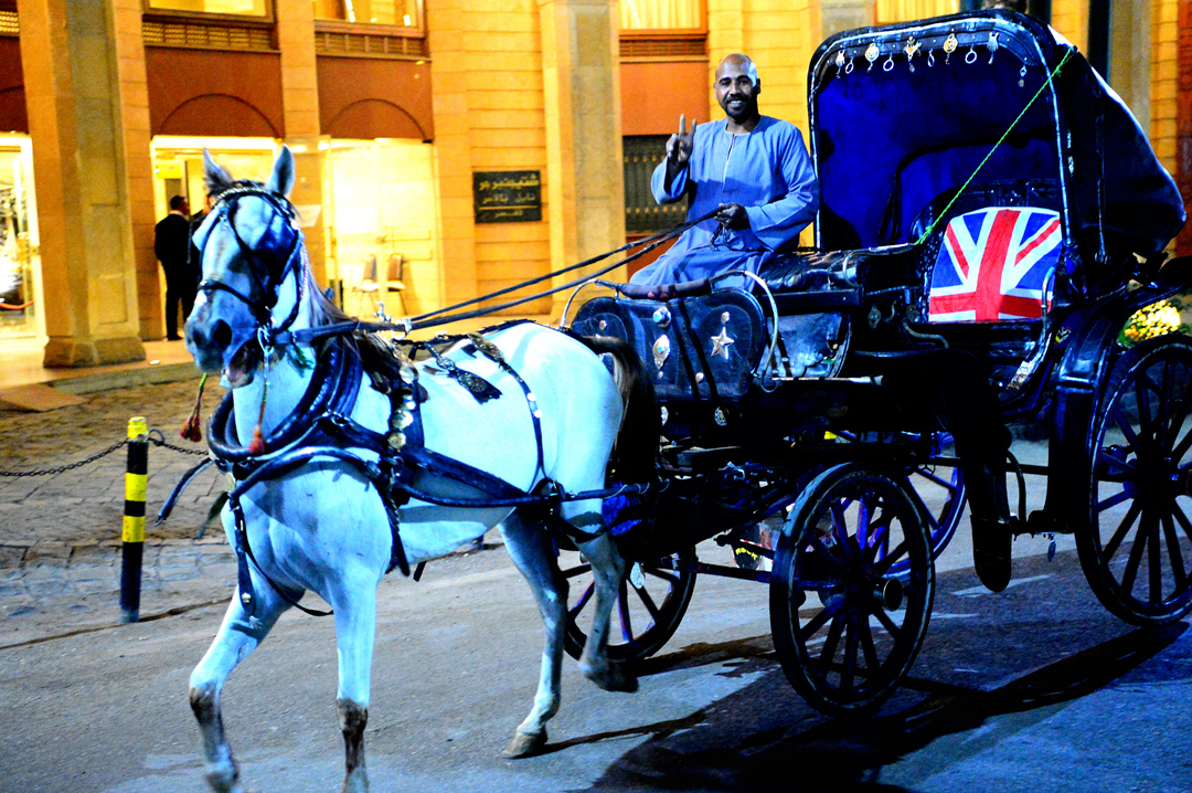 관광객을 위한 마차가 연거푸 호텔 앞을 지나간다.