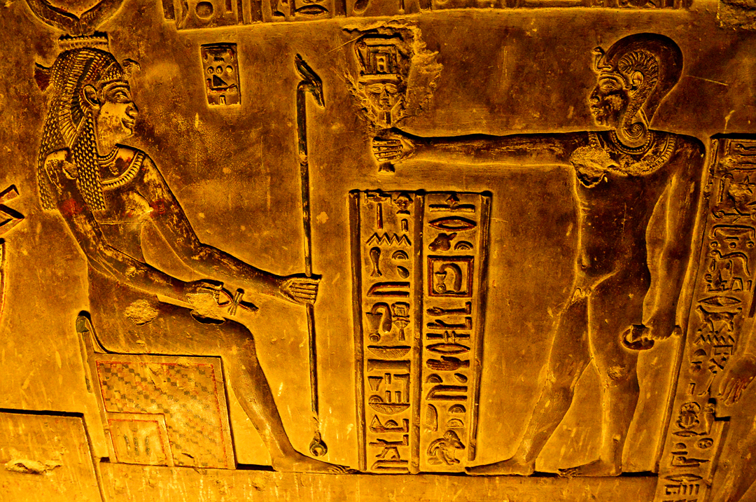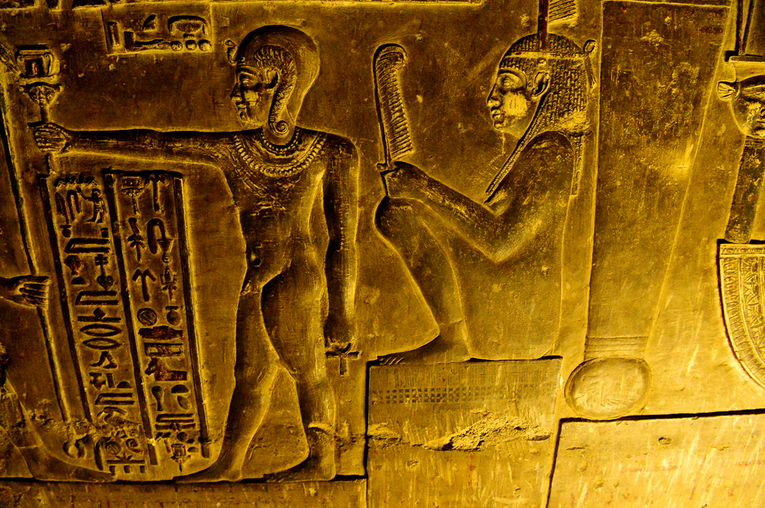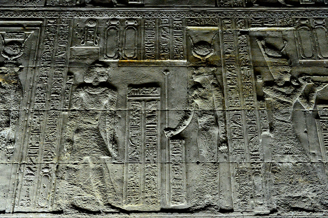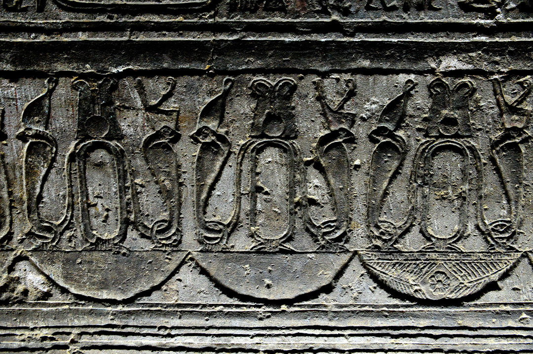 히에로글리프는 처음에는 파라오의 업적이나 사후 세계를 위한 주문을 신전의 기둥이나 무덤의 벽에 돋새김