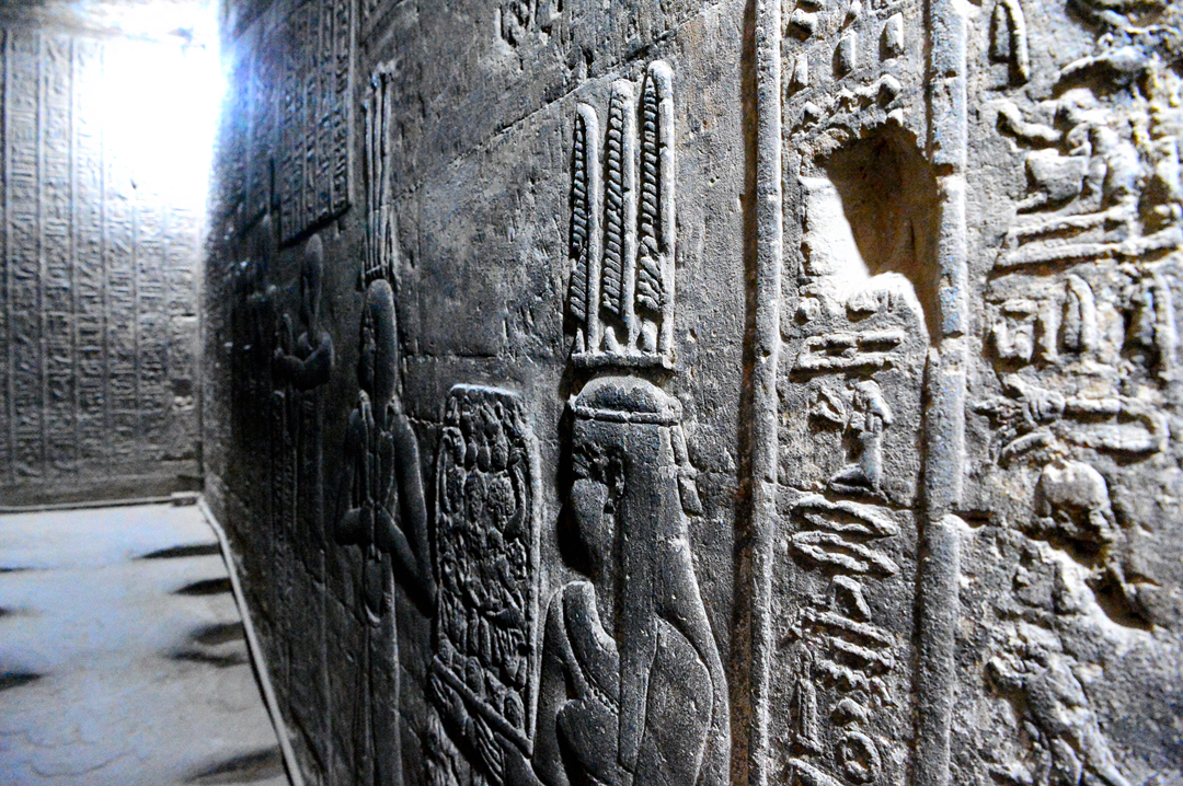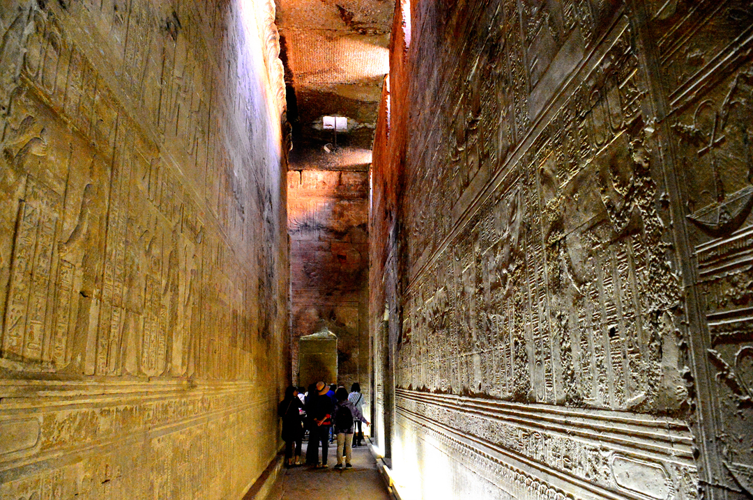 좁게 연결된 통로의 양 옆도 모두 그림 문자 히에로글리프로 가득 채워져 있다.