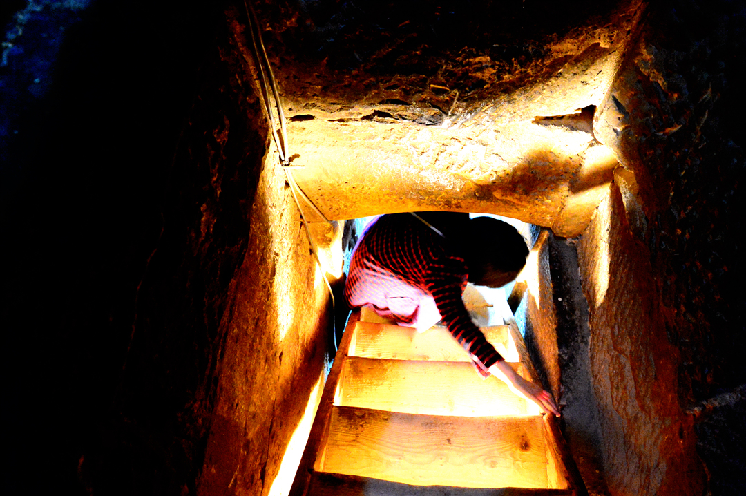 매우 좁고 가파른 계단이 지하로 연결되어 있는데,