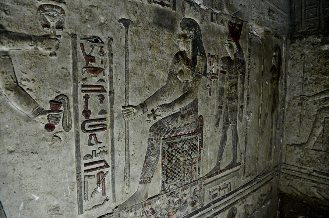 통로 벽에 새겨진 신들과 파라오의 모습들이고~