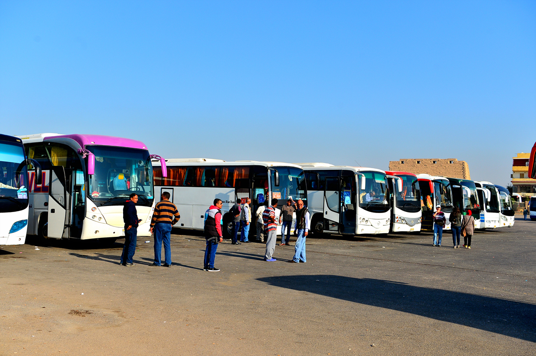 룩소르 관광을 위해 대기하고 있는 대형 버스다.