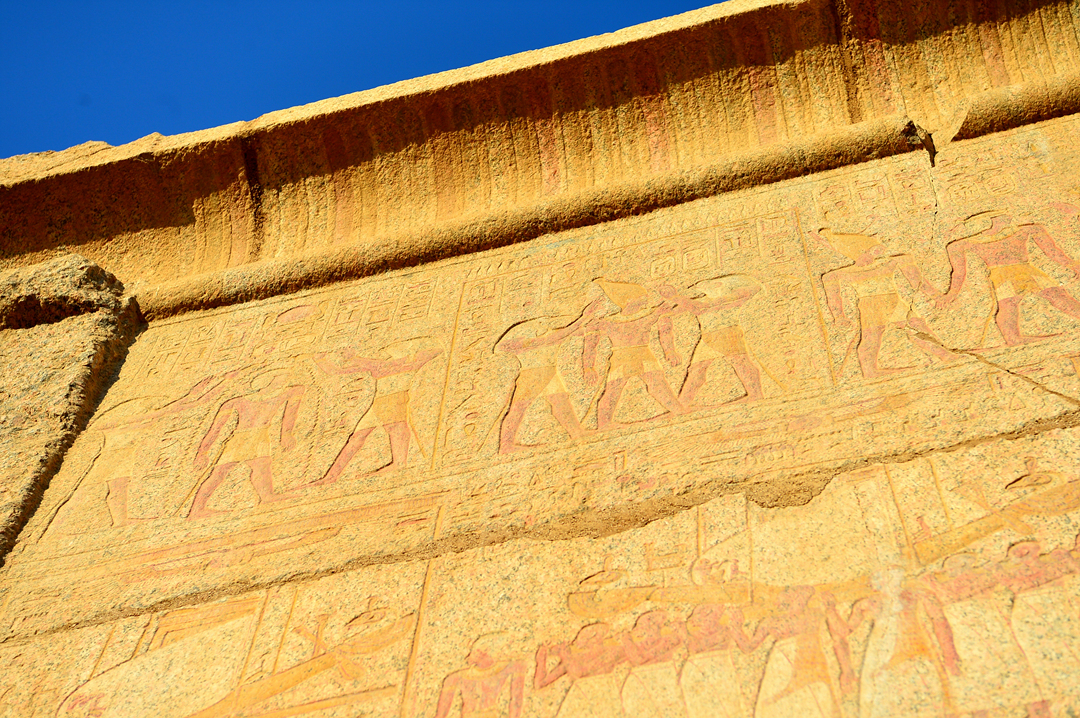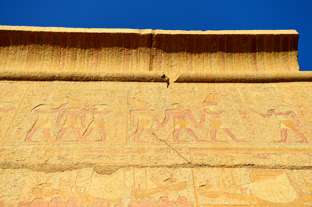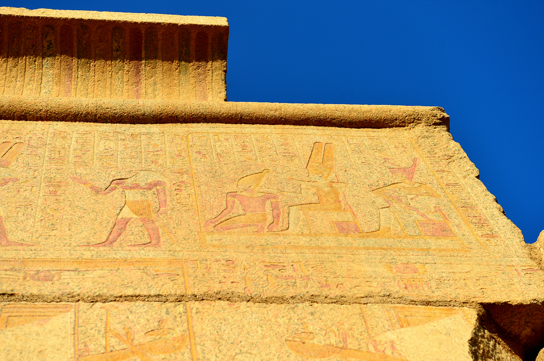 각 탑문에는 신들과 파라오에 대한 내용들이 부조로 새겨져 있다.