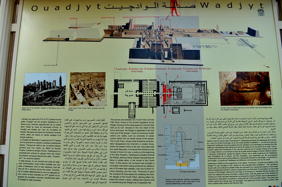 넷째 탑문과 다섯째 탑문 사이에는 하트셉수트 여왕이 세운 높이 30m, 무게 323t의 아스완산