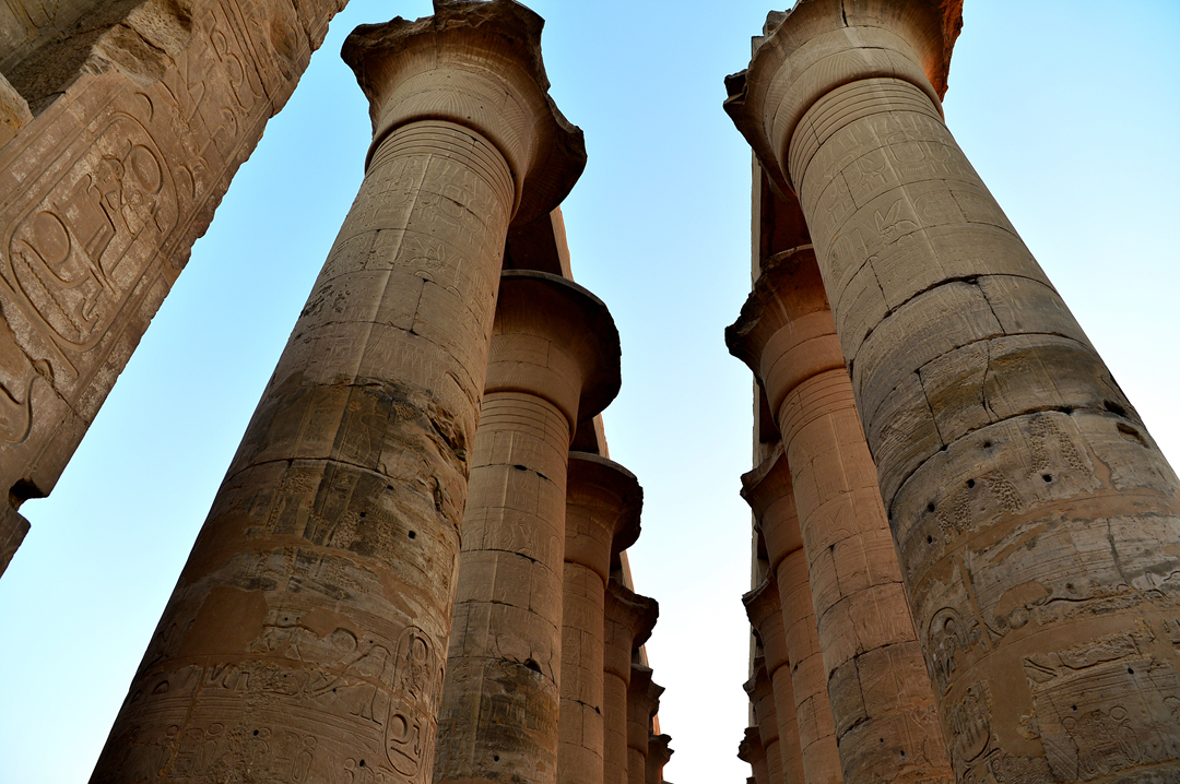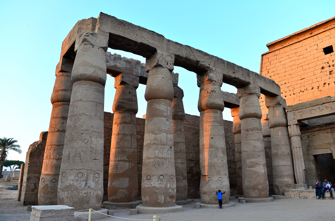 룩소르 신전의 중심인 이 기둥 복도는 아멘호테프 3세가 세운 것으로, 길이 52m의 기둥 복도에