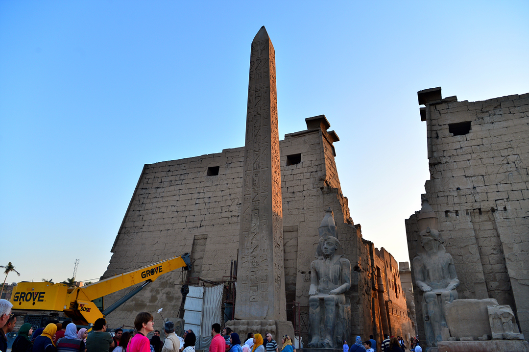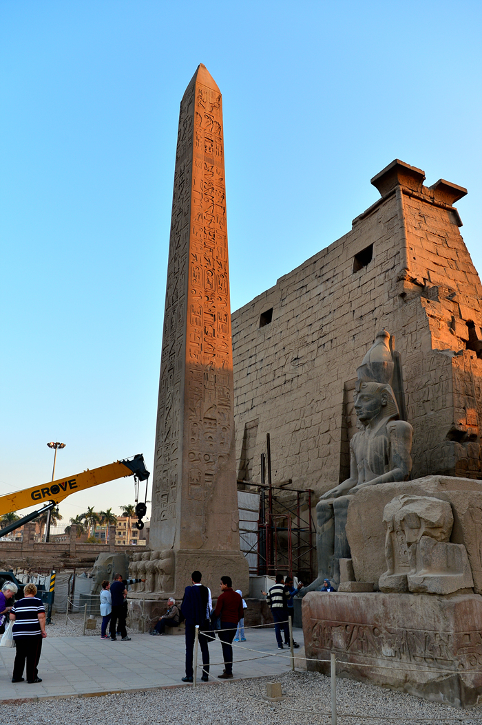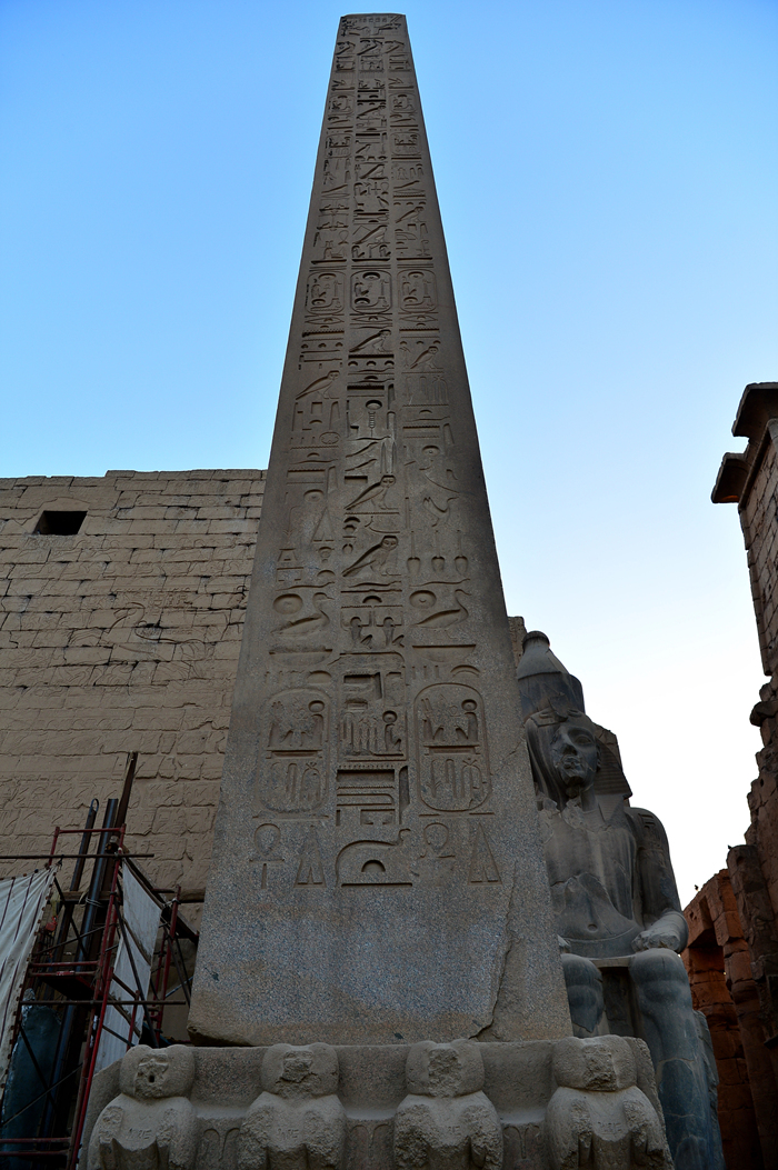 원래는 탑문 좌우에 람세스 2세가 만든 오벨리스크 두 개가 나란히 서 있었고, '태양이 뜨고 지는
