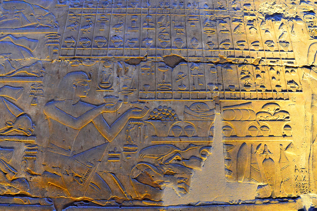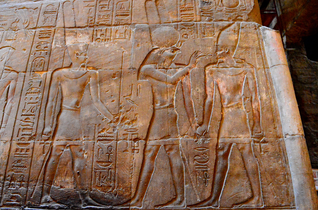 신의 축복을 받으면서 성장하는 모습과 창조신 크눔이 인간을 창조하는 모습을 돋새김으로 표현해 놓은