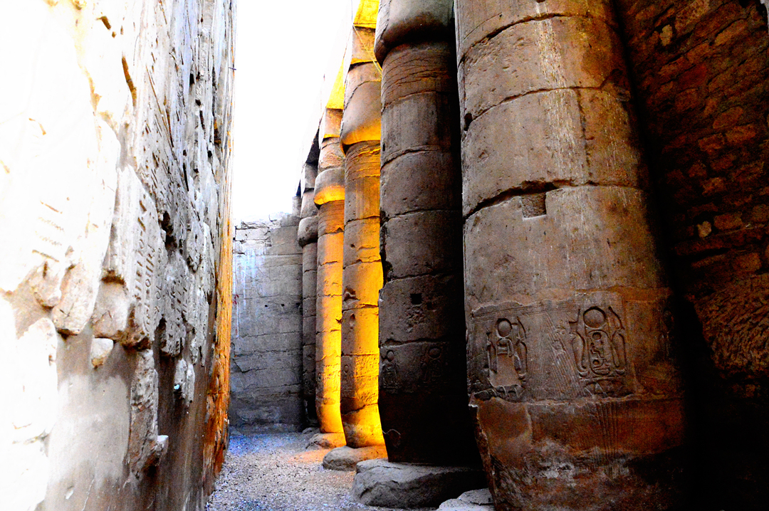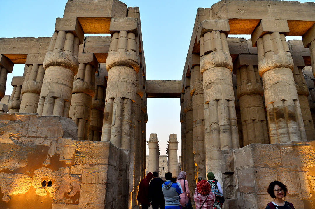 룩소르 신전의 중심인 아멘호테프 3세가 세운 14개의 큰 기둥으로 이루어진 기둥복도다.
