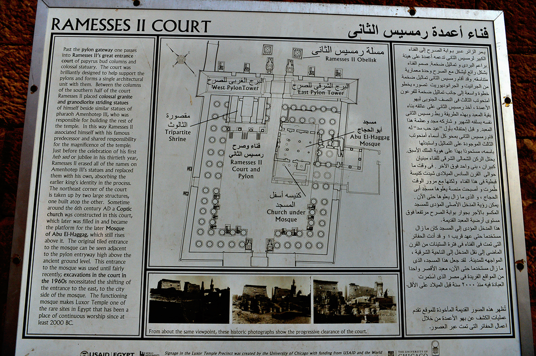 람세스 2세 안마당의 기념물들에 대한 안내도다.