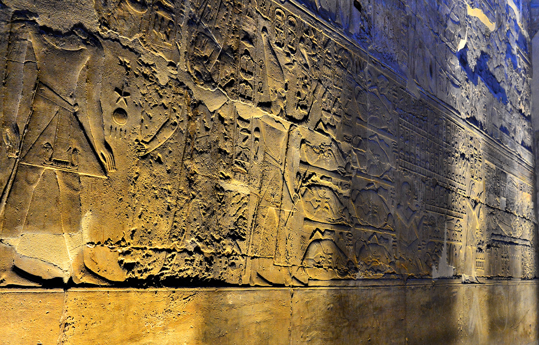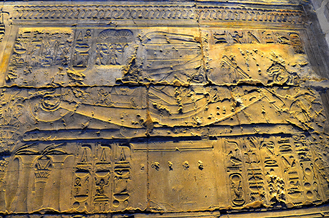 성소의 벽은 장제문서에서 발췌한 '밤과 낮의 태양선'을 담은 돋새김으로 장식되어 있고