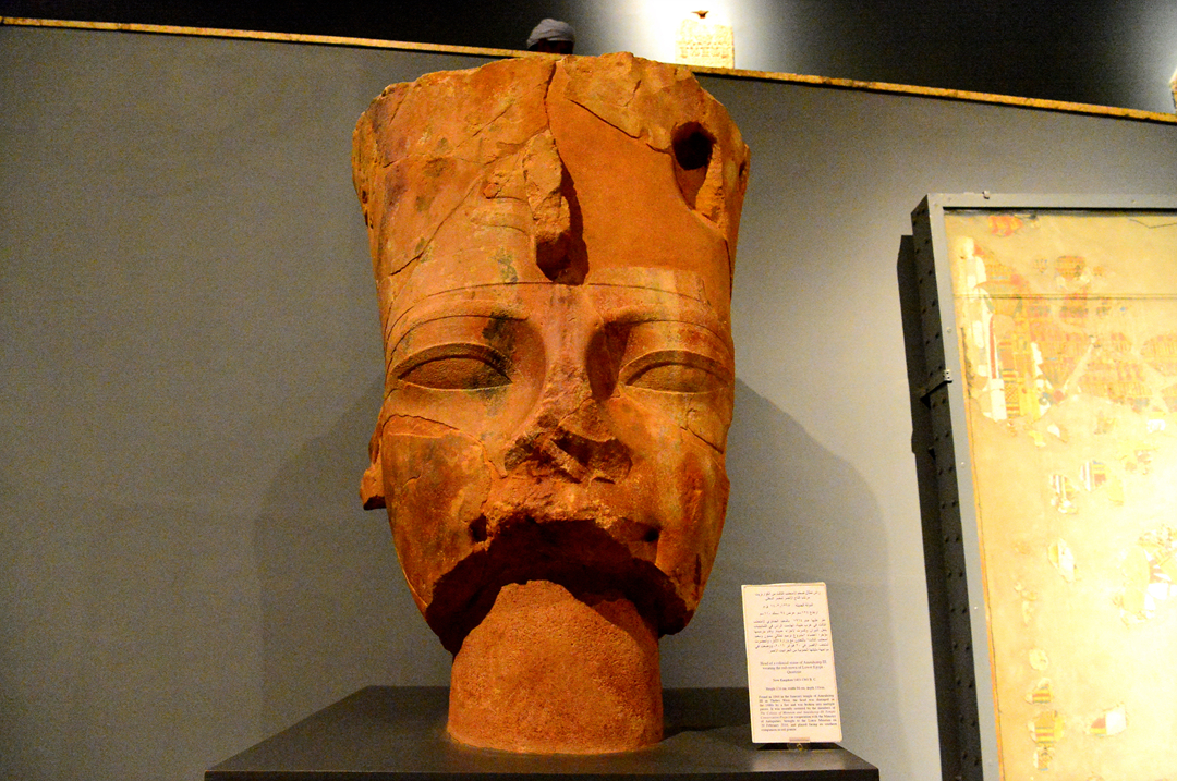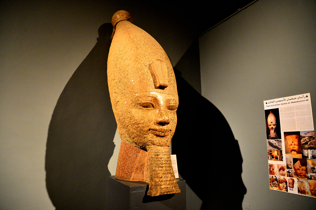 적색 화강암으로 만들었다는 2.15m에 달하는 아멘호테프 3세의 거대한 두상이다.