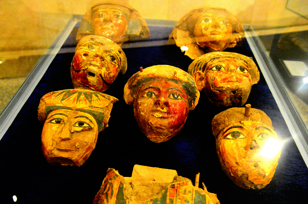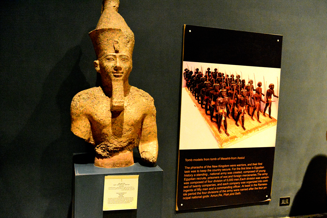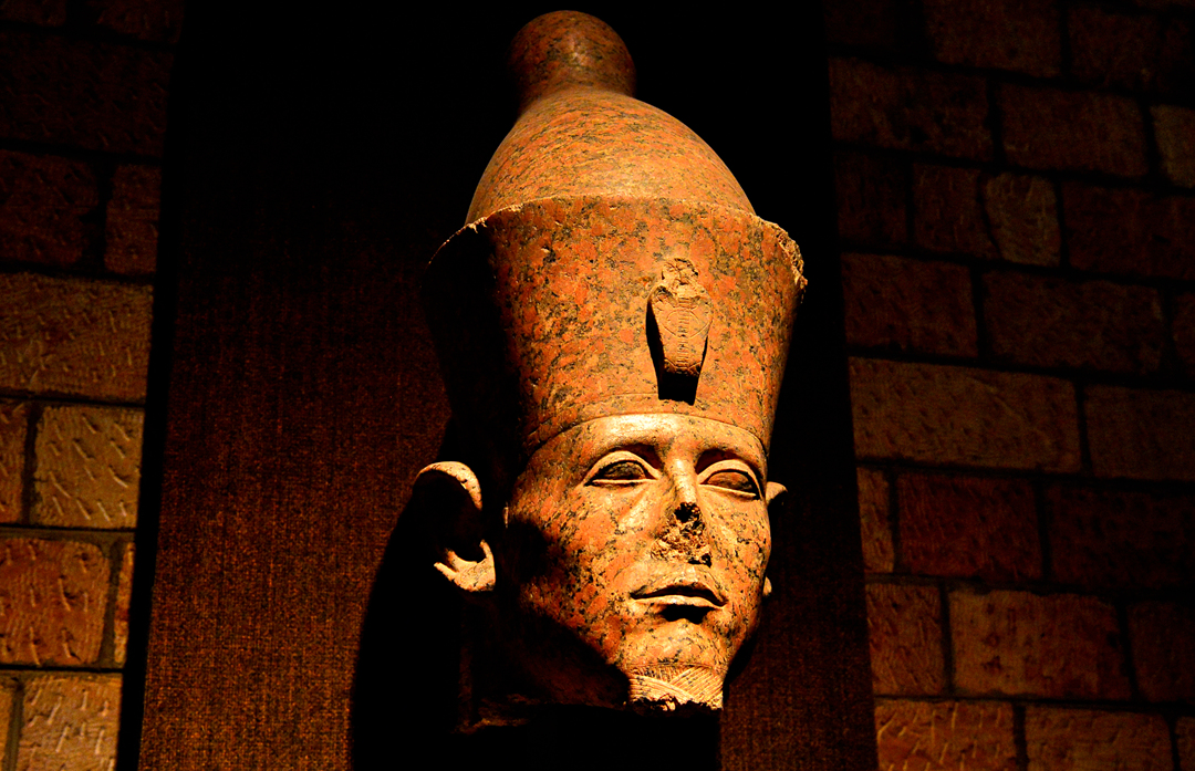 머리 상, 왕들의 골짜기의 무덤에서 발굴된 투탕카멘 입상, 카르나크 신전에서 발굴된 양의