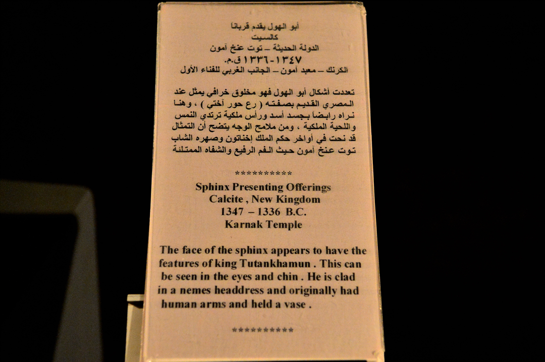 카르나크 대신전에서 발굴된 신왕국시대의 방해석으로 만든 스핑크스인데, 스핑크스의 얼굴은