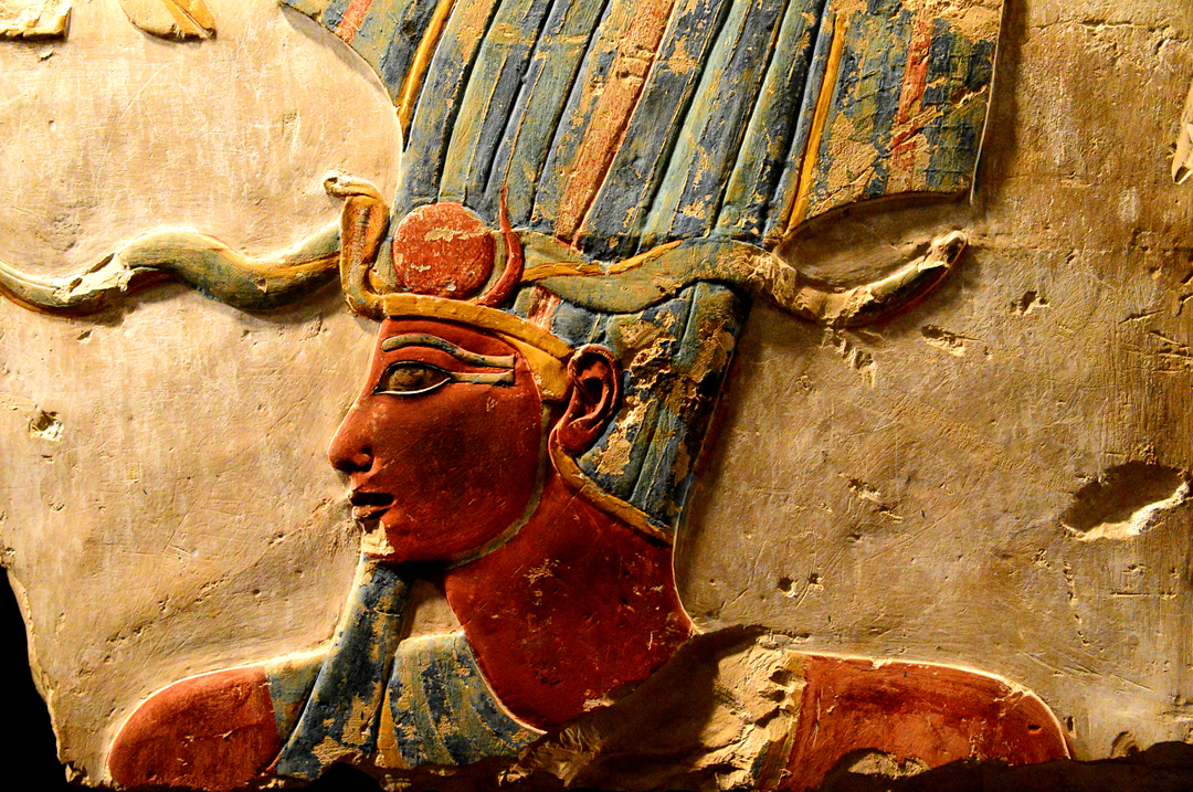 머리를 가진 하트호르 여신상, 하트셉수트 여왕의 돋새김, 람세스 3세의 작은 오벨리스크 등을