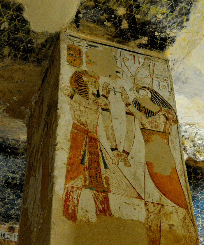 파라오 메렌프타 암굴 무덤 입구쪽에 있는 태양신 라와 파라오의 모습이다.
