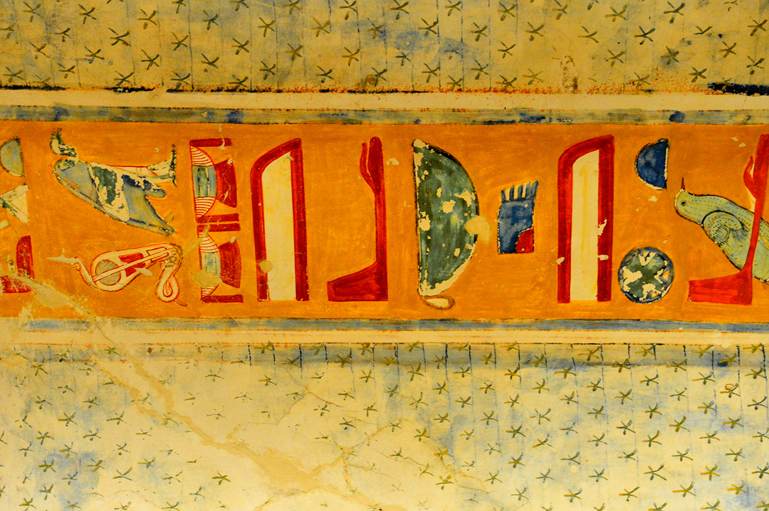 그리고 이어지는 히에로글리프로 가득 채워진 벽과 다양한 그림의 천장이 있는 통로 모습이다.