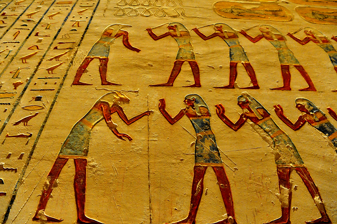 이곳에도 천지창조에 관한 그림인 듯한 천장화가 그려져 있는데, 람세스 9세의 무덤에서 보았던 것과