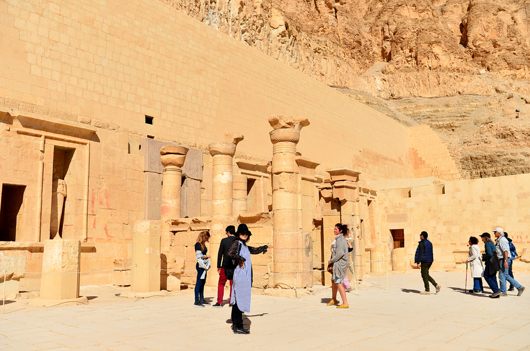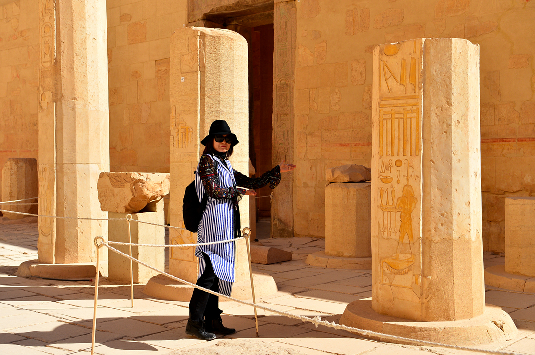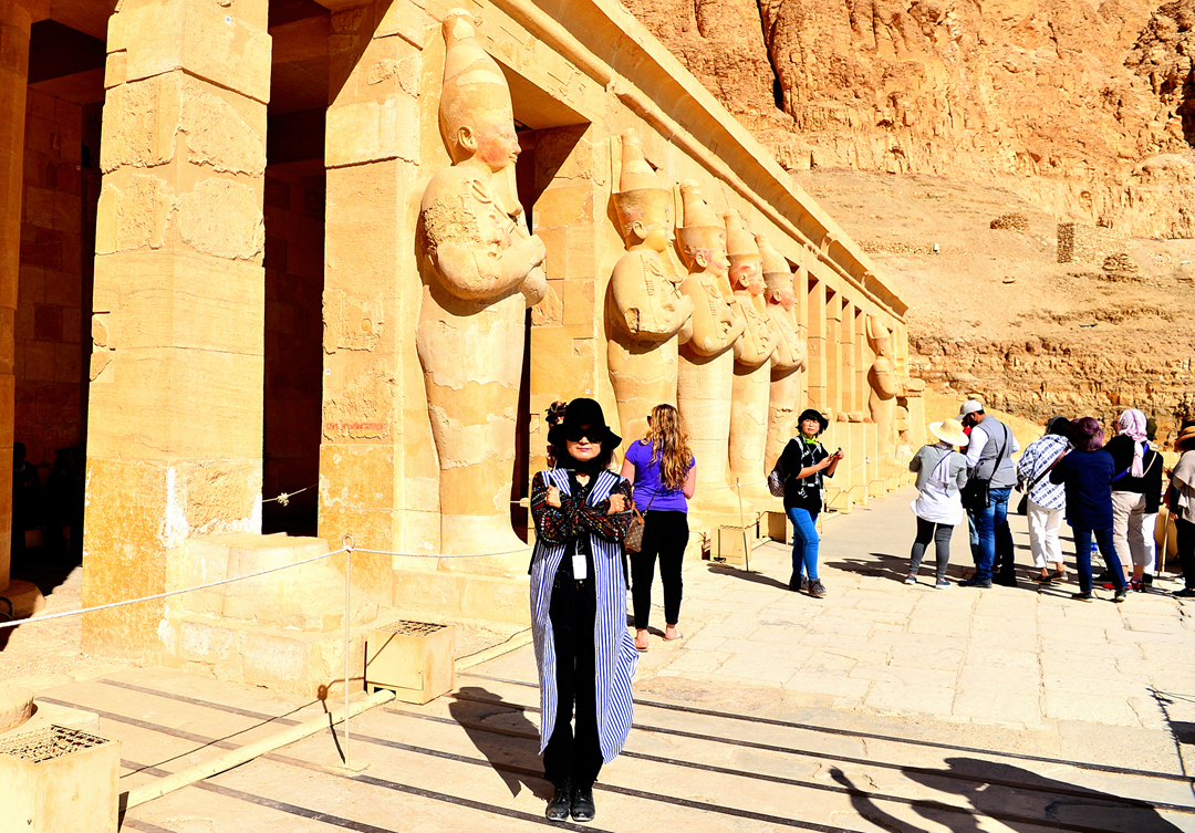 하트셉수트 장제전을 즐기는 서로 다른 동서양의 처자들 모습이다.