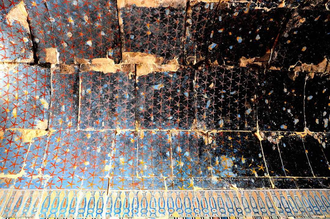 국가최고신 아멘-라와 앙크를 든 파라오의 모습이 선명한 둥근 천장 아래의 벽화 모습이다.
